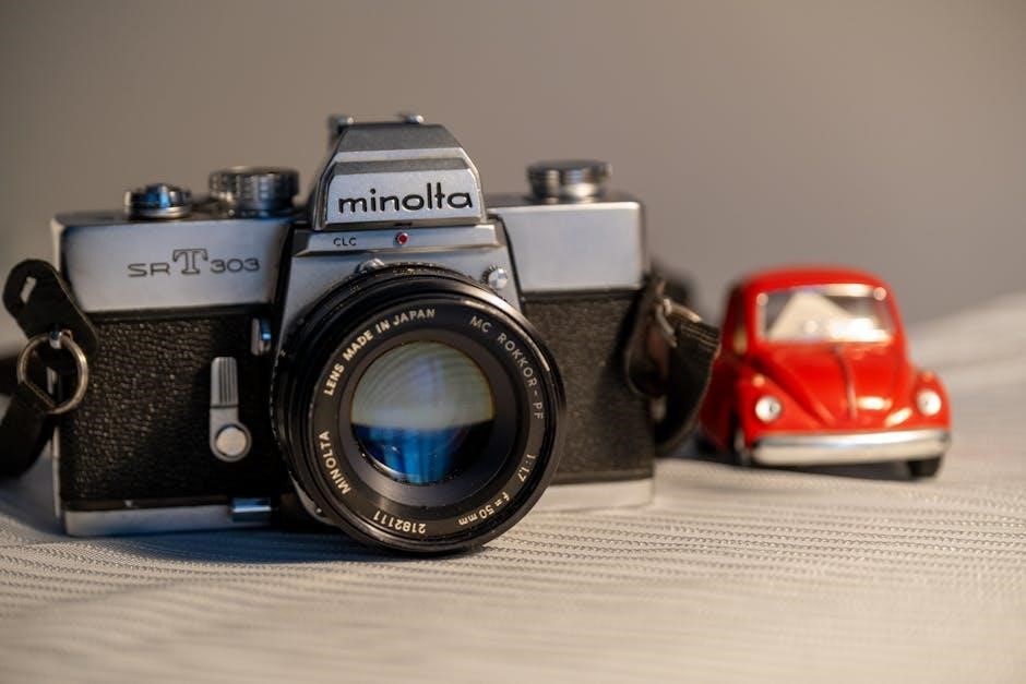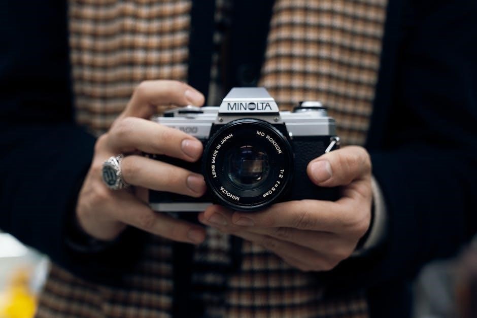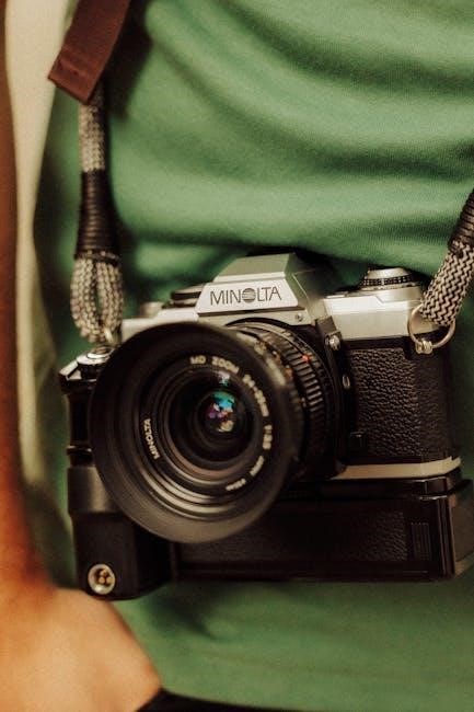 The Minolta Maxxum 5 boasts a sophisticated autofocus (AF) system designed for quick and precise subject acquisition. This system utilizes multiple focus points, allowing photographers to select the optimal area for focusing within the frame. The camera employs a contrast-detection autofocus method, ensuring sharpness and clarity. It offers both single-shot and continuous autofocus modes, adapting to static and moving subjects effectively. Understanding the AF system’s capabilities is crucial for capturing consistently sharp images, especially in dynamic shooting scenarios. Proper focus point selection and mode choice are key to maximizing the camera’s autofocus performance.