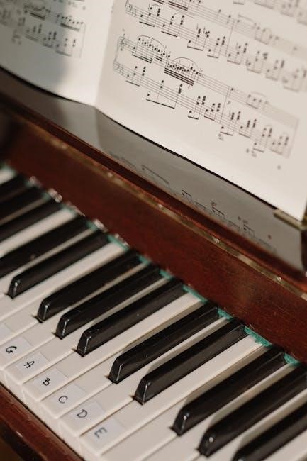 Conversely, the bass clef, or F clef, represents the lower-pitched harmonies and left-hand accompaniment․ Understanding both clefs is crucial for accurately interpreting the piano score․