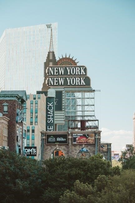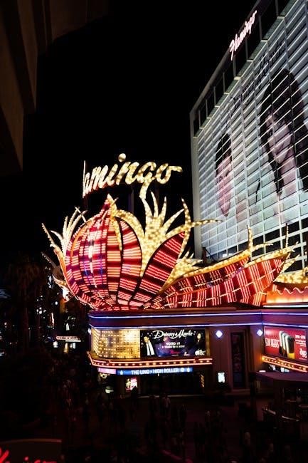 Navigating the Vegas Strip map PDF is simple, even for first-time visitors. The map clearly outlines the Strip’s layout, with color-coded sections and symbols for hotels, attractions, and landmarks. Start by identifying major landmarks like the Bellagio fountains or Caesars Palace to get your bearings. Zoom in on areas of interest to explore details like restaurant locations or show venues. For first-timers, downloading the map before arrival ensures instant access. Use it to plan routes, avoid getting lost, and discover hidden gems. The map’s user-friendly design makes it easy to navigate, helping you make the most of your Vegas experience.