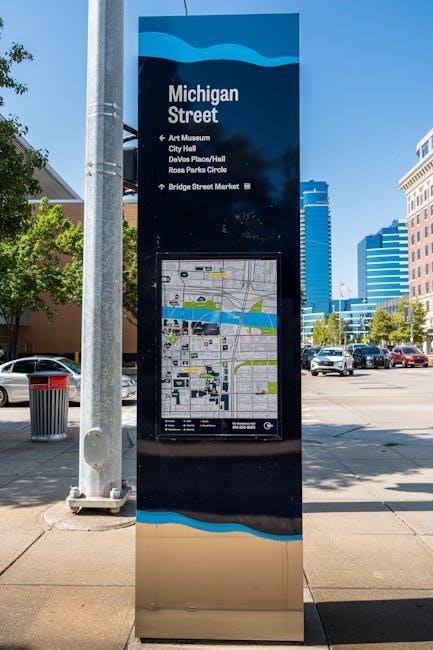 The Vegas Strip map PDF highlights key locations and routes, making it easy to identify major attractions and plan your path. Look for symbols marking hotels, landmarks, and transport hubs. Color-coded routes help distinguish pedestrian paths, monorail lines, and roadways. Key locations like the High Roller observation wheel and major resorts are prominently featured. Use the map to identify shortcuts or scenic routes along the Strip. Zooming in on specific areas reveals detailed street layouts, ensuring you can efficiently navigate between destinations. This feature is especially useful for planning itineraries and exploring hidden gems without getting lost.